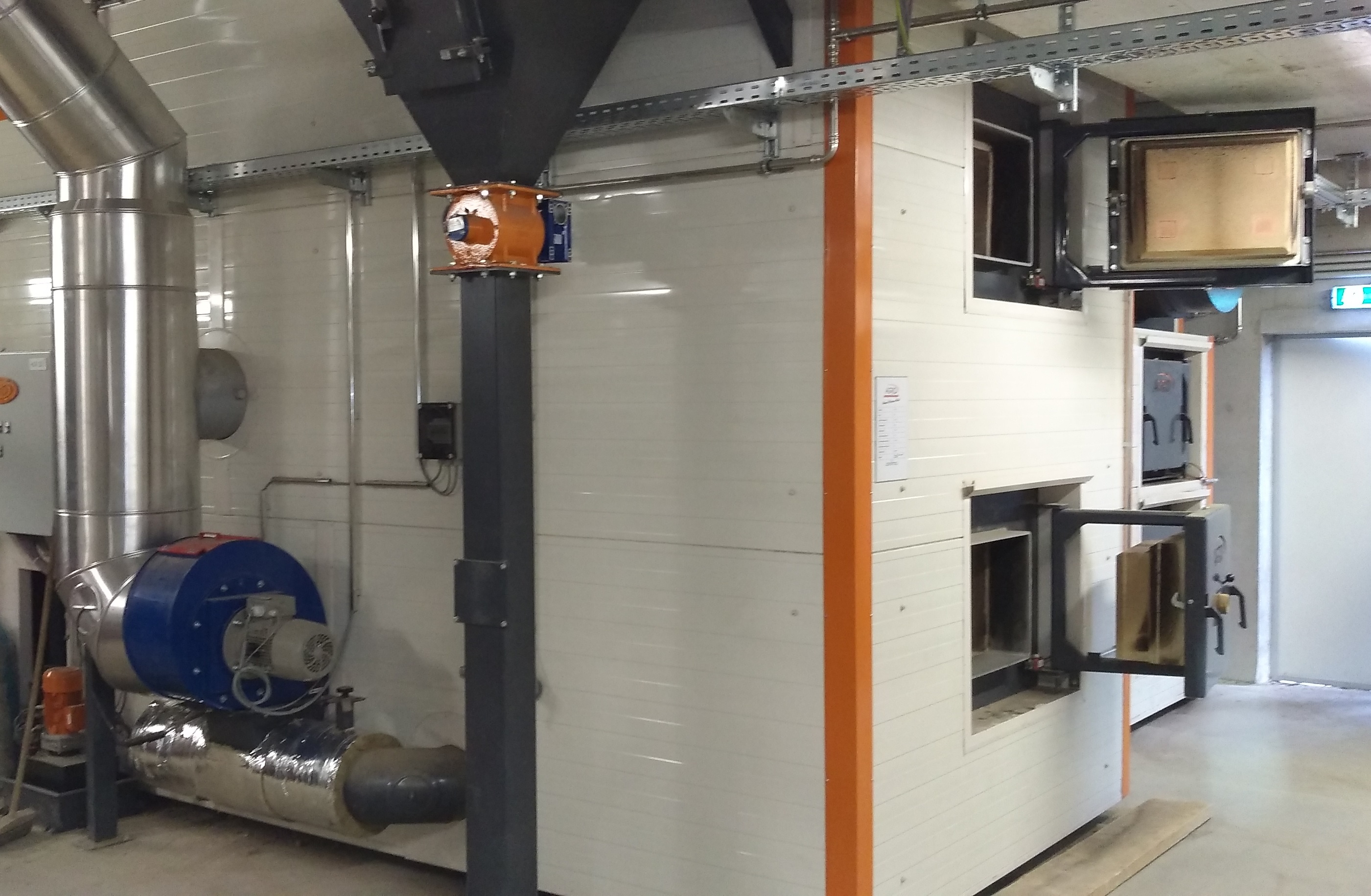 Le cœur de la centrale de chauffage, les 2 chaudières à biomasse AGRO d’une puissance de 1500 + 390 kW, ont été équipées du système breveté AGRO Efficiency Booster et du système AGRO de condensation des fumées avec technique d’élimination des buées, afin d’augmenter leur efficacité. Cette combinaison imbattable abaisse la teneur en O2 pendant le fonctionnement de l’installation à une valeur incomparable de 4,5 à 5 %, ce qui réduit considérablement la part des coûts de combustible. En outre, cela permet un fonctionnement continu de l’installation avec des teneurs en eau du combustible très différentes tout au long du processus de régulation. Il convient de noter tout particulièrement la régulation prédictive, qui a pour effet de réduire considérablement la sensibilité à l’usure de la grille et du revêtement réfractaire. Une efficacité maximale, un rendement maximal, une durée de vie maximale pour une consommation de combustible et de personnel minimale.